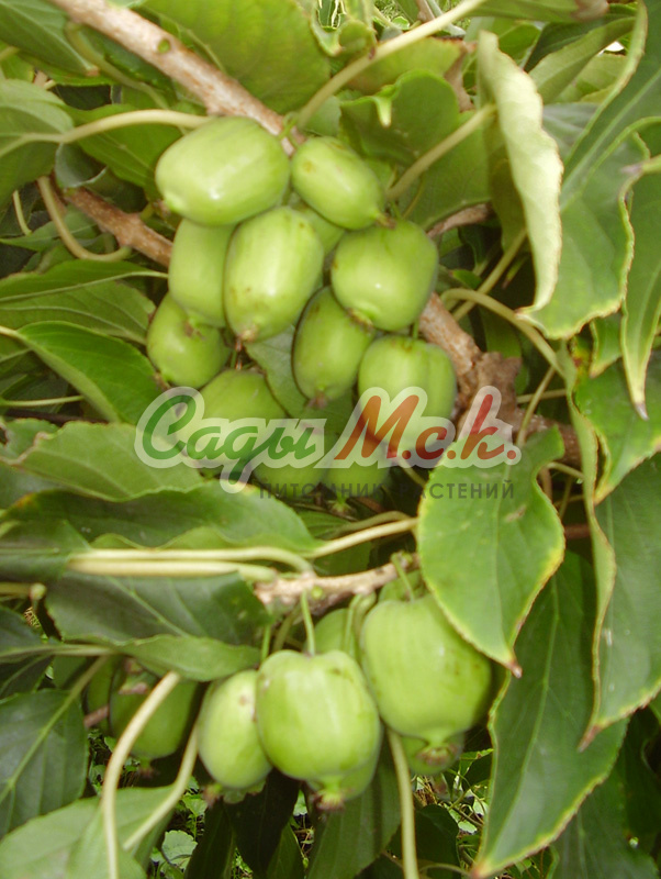 Женский десертный сорт актинидии, ранних сроков созревания ягод. Лиана средних размеров с вьющимися, неопушенными побегами. Листовые пластинки крупномеров актинидии Королева сада сердцевидные, голые, мягкие желтовато-зеленого цвета. Урожаи крупных (до 3,4 г) оливково-зеленых кисло-сладких, пахнущих ананасом ягод можно собирать, начиная с середины сентября. В среднем, с одного куста получают около 0,8 кг плодов. Сорт устойчив к разного рода инфекционным заболеваниям. Морозами повреждается в незначительной степени. Для ежегодного плодоношения необходимо соседство мужских растений.
