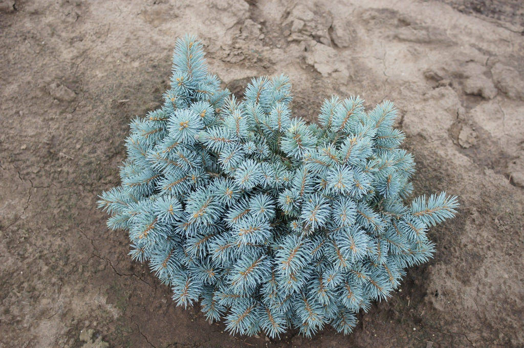 Карликовая ель. Крона плотная, неправильная, со временем принимает плоско-сферическую, слегка конусовидную форму. Растёт до высоты 90 см и диаметра 180 см. К 10-ти годам высота 30 см и диаметр 50 см. Хвоя короткая, весной серебристо-голубая, затем постепенно окрашивается в стальной цвет. Идеальный сорт для небольших приусадебных участков, альпинариев. Место солнечное или полутенистое. Почва умеренно плодородная, умеренно влажная. Зона 3 (до -34º).