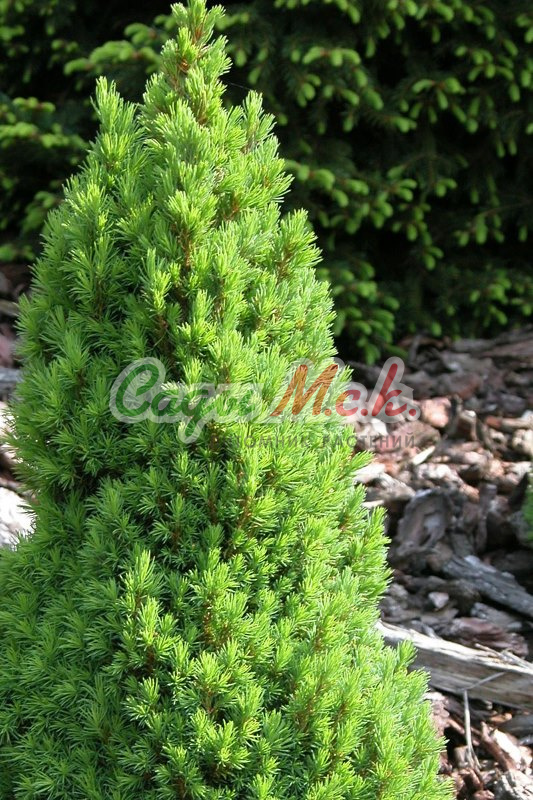 Ель сизая Laurin - карликовая форма с узкоконической кроной. Высота растения - 0,8-1 м, ширина 0,3 м. Растет ель медленно, около 2 см в год. Побеги расположены густо, хвоя 5-10 мм длиной, темно-зеленая, радиально расположенная, мягкая. Корневая система поверхностная.