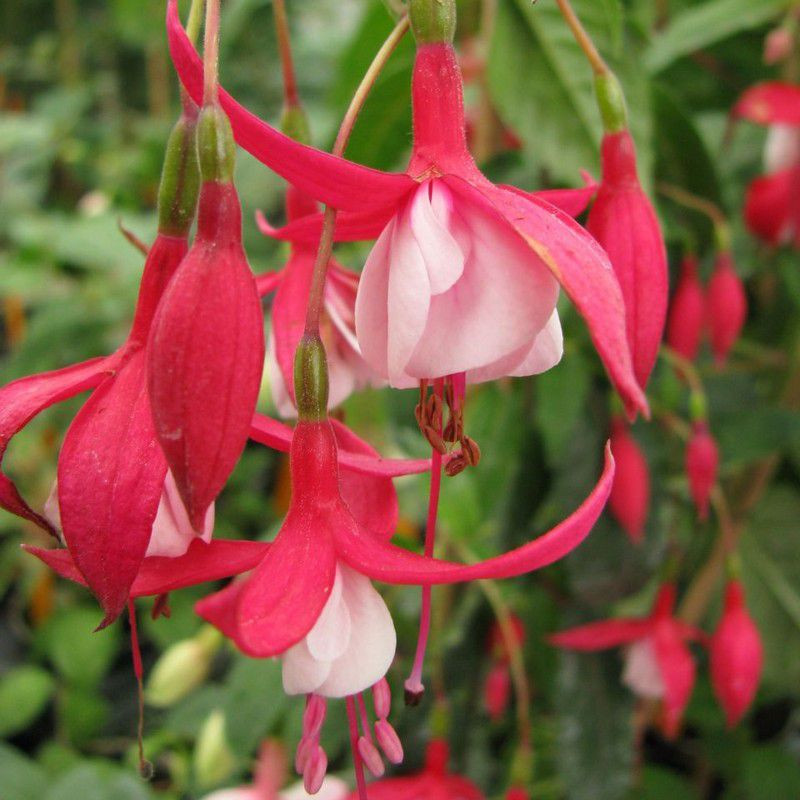 Уход: регулярные поливы, но без избытка воды, и подкормки полным комплексным удобрением через каждые 10 - 14 дней обеспечат обильное и непрерывное цветение. Поздней осенью побеги обрезают на уровне почвы и засыпают землей слоем 20 см, сверху прикрывают лапником. Черенкуют фуксии в течение всего периода вегетации, с весны до осени.