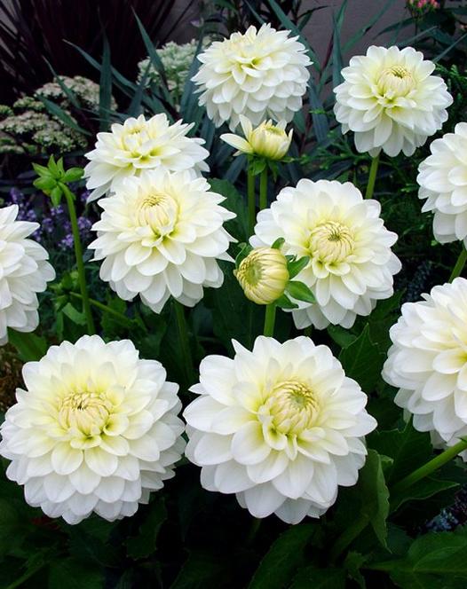 Георгина декоративная Карма Серена (Dahlia decor Karma Serena) подойдет для дренированных почв с большим количеством витаминов и минералов. Она любит солнечные места, закрытые от сквозняков и холодного ветра. В таких условиях растение вырастает до 90 см в высоту и с июля по октябрь буйно расцветает множеством сливочно-белых крупных цветков 10-15 см в диаметре. Центр цветка желто-зеленый и хорошо оттеняет белоснежность кончиков лепестков. Отсутствие аромата делает цветки идеальным украшением закрытых помещений и прекрасным соседом в смешанных посадках. Хорошо смотрятся единичные кусты на клумбах и газонах.