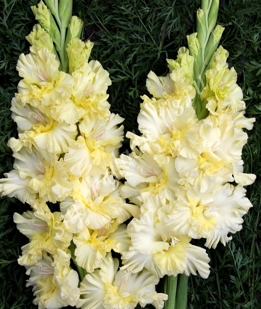 Гладиолус Патронс оф ве Центури, безусловно, вызовет улыбку на вашем лице! Кремово-желтые цветки с красивейшей гофрировкой и защипами, закрывающими горло.
