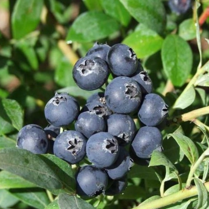 Саженцы голубики Bluejay относятся к сорту, который объединил в себе полезность плодов и их декоративность. Кустарник развивается довольно быстро и достигает высоты около двух метров. Блестящие листья формируют эффектную крону. Крупномер сорта Bluejay плодоносит в период июль-август. Ягоды темно синего окраса составляют крупные яркие кисти. Плоды обладают изысканным ароматом и сладким вкусом.Достоинства: выраженная устойчивость к заболеваниям и вредителям; отсутствие мумификации ягод; высокая урожайность.