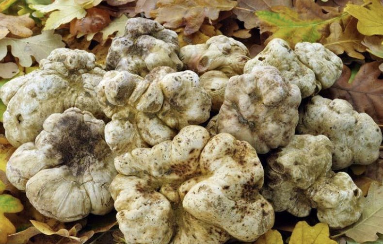 Трюфель белый в природе встречается редко . Это сумчатый гриб с подземными телами специфической формы угловато-бугристого, бородавчатого вида, составляет микоризу с корнями таких деревьев, как дуб, орех, береза, бук, граб и др. Размер плодового тела до 15 см. при весе до 500 г. Вкус больше напоминает мясной, нежели грибной . В почве находится на небольшой, до 15 см. глубине . Встречается в центре Европейской зоны, среднем Поволжье, Московской, Тульской, Смоленской, Владимирской, Орловской областях. Внешне напоминает картофель с присутствием прожилок.