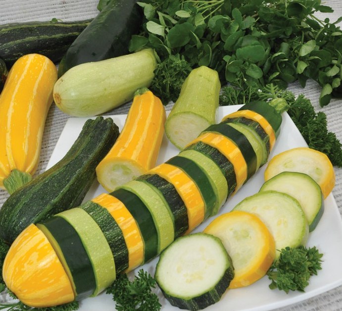 Кабачок Anaconda Mix - удивительный сорт-смесь, включает себя 3 сорта-цуккини с плодами одинакового размера и формы, но разной окраски - кремово-белой, желтой и темно-зеленой. Урожайность отличная. Смесь идеально подходит для приготовления шашлыков и барбекю.