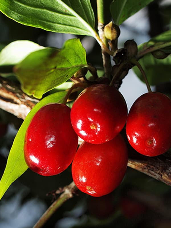 Саженцы кизила Светлячок - это то, что вы так долго искали! Их лучше всего сажать весной. Это среднеспелый, засухоустойчивый, зимостойкий, крупноплодный сорт кизила. Дерево формирует довольно компактную, овально-пирамидальную, несколько загущенную крону. Как правило, плоды имеют среднюю массу 6,5-7,5 г, бутылочной формы с толстой шейкой, при созревании приобретают густокрасную, практически черную окраску. Мякоть плотная, темно-красная, ароматная, сочная, кисло-сладкого вкуса. Косточка веретеновидная, маленькая, заостренная с двух полюсов. Созревают плоды в конце августа - начале сентября, поэтому крупномер Светлячок» определенно стоит купить. Созревшие плоды прекрасно удерживаются на дереве в течение 2-х недель, а собранные нормально сохраняться 3-4 недели.
