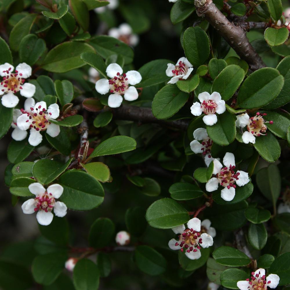 Кизильник Eichholz - декоративный стелющийся кустарник с густыми сильно ветвящимися побегами, достигает до 0,3 м в высоту и до 1 м в диаметре. Медленно растущий сорт: 7 см в высоту и в ширину за год. Живет 30 лет. Семейство розовые. Темно-зеленые листья осенью меняют окраску до красно-оранжевого цвета, округлые, блестящие, 1 см в длину. Цветки белые, одиночные. Цветет кизильник в мае-июне. Плоды овальные, оранжево-красного цвета, многочисленные, остаются на кусте всю зиму.
