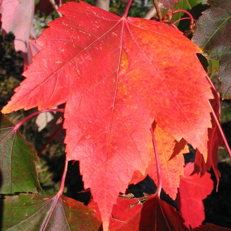 Один из лучших красных сортов клена по осеннему окрасу. Клен Красный Закат краснеет раньше клена October Glory. Дополнительный плюс этого растения является его повышенная морозоустойчивость, что делает его еще более популярным. К тому же этот клен отличается своей декоративностью в весенний период. Когда еще до появления листвы его украшают темно-красные соцветия. Растет быстро. Высота взрослого растения 12м. Крона коническая, закругленная. Листья трехпальчиковые, летом зеленые, а осенью окрашиваются в очень красивый ярко-алый цвет, за что этот клен и получил название "Красный закат". Любит солнце. К почвам не требователен, но плохо переносит уплотнение. Хорошо переносит дымо- и газоустойчивость, поэтому часто используется для озеленения городов