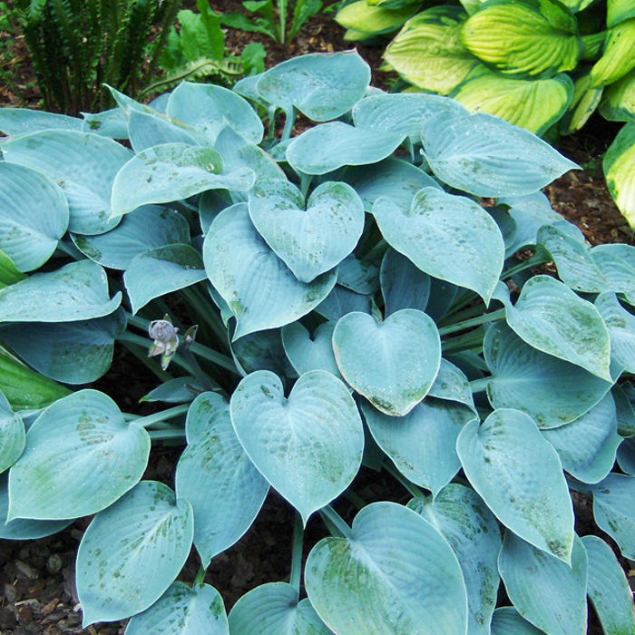 Хоста гибридная Блу Стилтон - многолетнее, декоративно-лиственное растение. Размер куста до 45х65 см. Листва голубовато-зеленая, цветы лавандовые. Для посадки выбирают полутенистые или тенистые места, предпочитает влажные почвы. Полив тщательный и регулярный, при хорошем поливе у хосты будут крупные, здоровые листья и пышное цветение. Хоста гибридная Блу Стилтон прекрасно зимует. На одном месте может расти более 20 лет. Эффектно смотрятся у водоёмов.