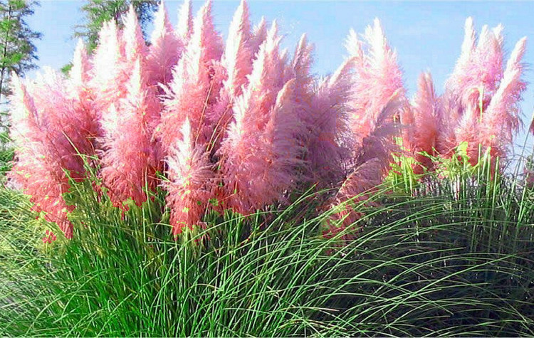 Кортадерия Rosea - высота 2 м, соцветия серебристо-белые с розовым оттенком. Соцветия кортадерии широко используют на срезку в свежем или засушенном виде. Цветки мелкие, со сросшимися чешуями, кожистые, собраны в 4-7 цветковые колоски. Цветет с августа по октябрь, очень красива, благодаря крупным шелковистым метелкам, состоящим из мелких колосков.