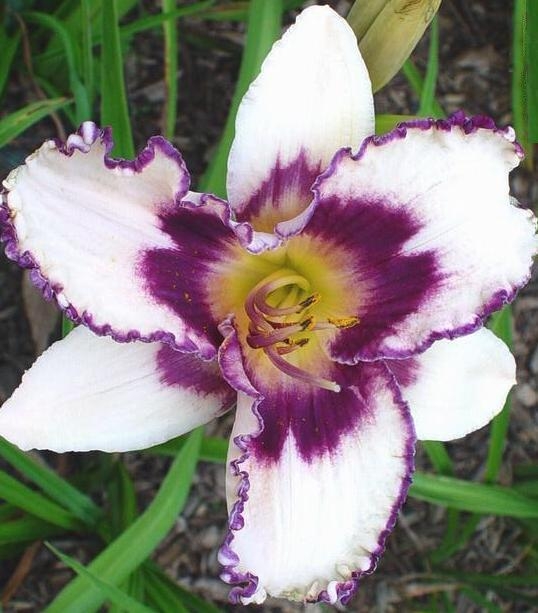 Саженцы лилейника Bluеbеrrу Sundае растут до 60 см, и рано зацветают. Кремово-белый низкорослый ароматный гибрид, с ярким фиолетовым кантом. Длинные вытянутые зеленые листьями мечевидной формы отлично сочетаются с нежными цветами. Для этого сорта характерно пышное цветение. Крупномер Bluеbеrrу Sundае хорошо сочетается с другими растениями на клумбе. Бутон объемный, более упругий, края лепестков волнистые. Предпочитает солнце, полутень, в тени развивается плохо. Мало поражается болезнями. Для лучшего цветения рекомендуется проводить подкормки.