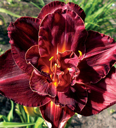 Саженцы гибридного лилейника Burgundy Love – многолетники с крупными цветками. Тёмно-бордовые бархатные лепестки, жёлтая серединка и тонкая белая окантовка. Диаметр соцветий 15 см. На одном кусте множество бутонов, которые создают непрерывное расцветание. Высота растения – полметра. С июня по июль крупномер Burgundу Lоvе радует своими цветами. Условия высаживания и ухода: перед посадкой хорошо удобрить землю; подобрать светлое место, подойдёт и полутёмное;полив умеренный, особенно при цветении.