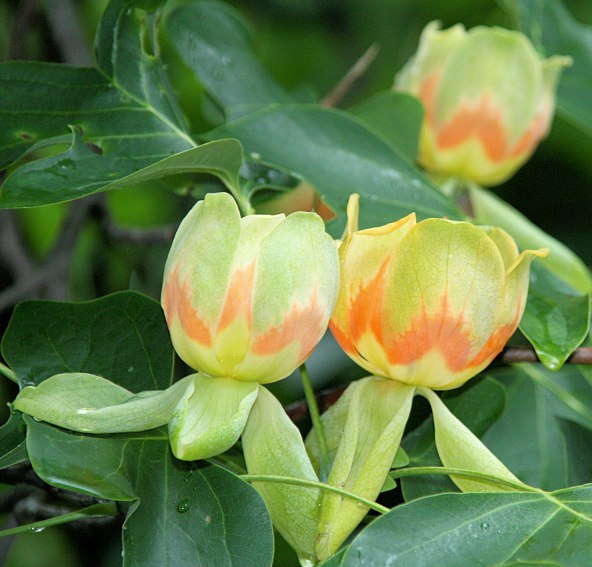 Лириодендрон Roothaan - дерево высотой 25 метров. Крона высокая, у молодых деревьев пирамидальная, с возрастом приобретает более овальные очертания. Ствол прямой, массивный. Кора молодых деревьев гладкая, светло-серо-зелёная, у более зрелых неровная, с белыми ромбовидными бороздками. Листья очередные, простые, с пальчатым жилкованием, широкие, зелёные. Цветки напоминают бутон тюльпана, около 6 см в длину, двуполые, с бледно-зелёно-жёлтыми лепестками и оранжевым венчиком, источают аромат.