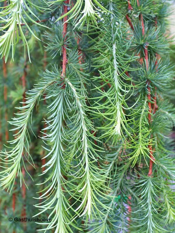 Лиственница японская Blue Rabbit Weeping выделяется особым цветом хвои и формой шишек. Считается одной из самых красивых лиственниц в мире. Листопадное дерево с меняющейся с возрастом формой кроны (от узкого до широкого конуса), высотой от 15 – до 20 м. Самые молодые ветви – поникающие. Молодые побеги красноватые, с сизым налетом. Кора ветвей серая. Хвоя ежегодно опадающая, длинная – от 1,5 до 3,5 см, мягкого серо-сине-серебристого оттенка. Осенью окрашивается в ярко-желтые, золотые тона значительно позже других видов. Шишки в молодости желтовато-зеленые, шаровидные – 2-3 см в диаметре, с тонкими, кожистыми чешуями, отогнутыми в верхней части подобно лепесткам роз. Сохраняются на ветвях до 3 лет.