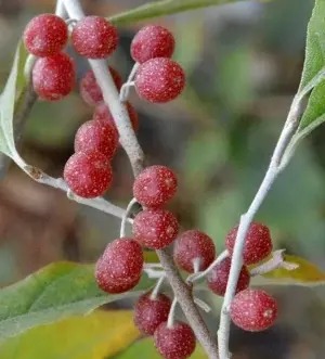 Листья ланцетные. Верхняя часть листа зелёная, нижняя часть серебряно- белая с коричневыми точками. Цветки небольшие (диаметр 1 см), многочисленные, бледно-жёлтые с длинной трубкой, ароматные, медоносы. Цветёт в конце IV i V. Плоды съедобные и полезные, крупнее чем у сорта AMOROSO®, в большом количестве, густо облепляют короткие стебли. Ягоды сладко-кислые, коралловые-красные, в пятнышках; созревают IX-Х. Растения обильнее плодоносят, когда рядом растут хотя бы два сорта из серии POINTILLA®.