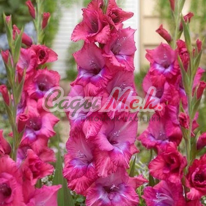 Гладиолус крупноцветковый Эва Пьюксо - невероятно красивый сорт с крупными цветками. Цветки собранные в колосовидные соцветия, насыщенно-розового цвета с более светлым центром и тонкой каймой по краю лепестков. Растение высотой 80-110 см, неприхотливо в выращивании, легко размножается клубнелуковицами или клубнепочками. Любит обильный полив, после полива почву вокруг растения взрыхляют и окучивают. Перед посадкой Гладиолуса крупноцветкового Эва Пьюксо в почву рекомендуется внести минеральное удобрение для луковичных цветов, хорошо взрыхлить и дренировать.