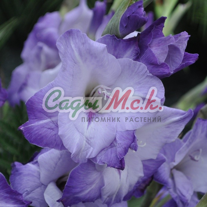 Гладиолус крупноцветковый Роял Дач (Gladiolus) привлечет внимание любого человека. Цветы вырастают достаточно высокими (1,2-1,3 метра). В соцветии образуется до 26 цветков. Цветы имеют конусную форму, скрученную в воронку. Внутри цветок окрашен в два тона: центр - белого цвета, кончики – лилового. Комбинация оттенков придает гладиолусу особую нежность.