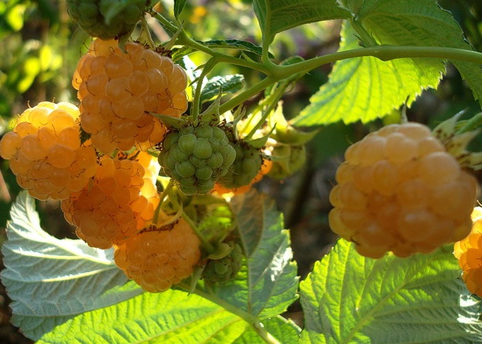 Малина Янтарная - сорт малины ремонтантный, позднего срока созревания, универсального назначения использования. Куст средний, мощный, слабораскидистый. Побегообразовательная способность на куст 6-9 побегов. Листья средние, светло-зеленые, гофрированные, слабо скрученные, слабоопушенные со среднеострыми краями. Боковые плодоносящие веточки голые со слабым восковым налетом. Ягоды полушаровидной формы, ярко-оранжевой окраски. Мякоть нежная, сладкая, ароматная.