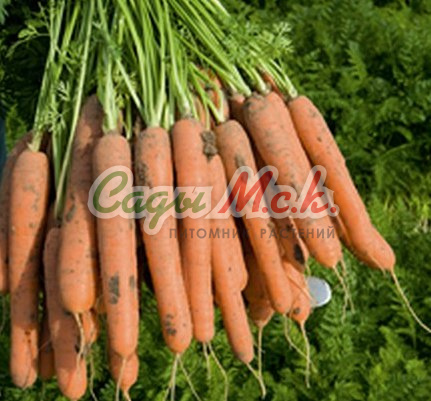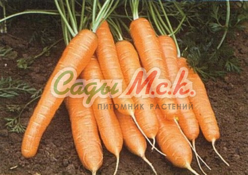 Среднеспелый (80-100 дней от всходов до технической спелости) сорт. Корнеплод цилиндрической формы с тупым кончиком, красно-оранжевого цвета, гладкий, длиной 16 см, диаметром 4-5 см. Мякоть очень вкусная, сладкая, сочная и хрустящая. Масса корнеплода 90-160 см. Сорт устойчив к цветушности и основным заболеваниям моркови. Рекомендуется для употребления в свежем виде, переработки и длительного хранения. Посев семян в грунт производят в конце апреля – начале мая на глубину 1 см, расстояние между рядками 15 см. Подросшие всходы прореживают, оставляя между растениями по 5-7 см. Урожайность до 7,0кг/м2.
