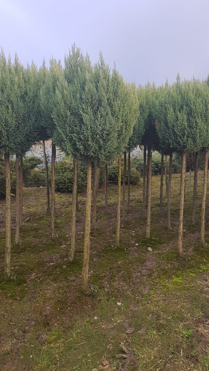Кустарник с конусовидной формой кроны и плотными вертикально растущими ветвями.