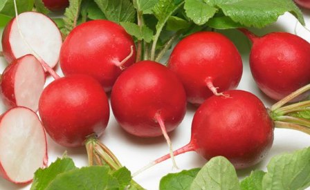 Редис Рондеел - высокопродуктивный холодостойкий сорт, выращивается в открытом грунте. Плоды округлой формы, насыщенно-красного цвета, гладкие, диаметром 4 см и массой 25 грамм. Мякоть белого цвета, сочная, слабо-острого вкуса, без горечи.