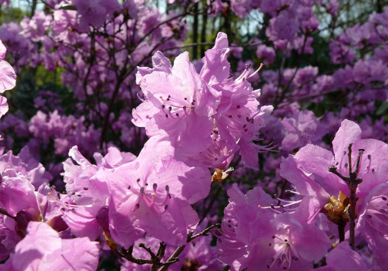 Рододендрон Libretto - колоритный долгоцветущий сорт, не боится жары и не меняет цвет под прямыми лучами солнца. Цветки яркие, малиново-фиолетового оттенка, лепестки по краям волнистые с большими оливково-коричневыми пятнами. Формирует вертикальный компактный куст, куполовидной формы. Морозостойкость -26 С.