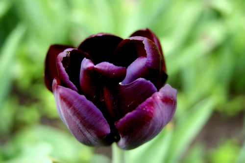 Тюльпан Вlack Jack - очень темный, коричнево-пурпурно-фиолетовый, среднемахровый цветок. Высота взрослого растения составляет 50-60 см. Цветет сорт в середине мая.