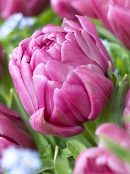 Тюльпан Double You относится к махровым сортам поздрего срока цветения. Зацветает этот тюльпан в апреле-мае. Растение средних размеров, высота стебля варьируется от 30 до 40 см. Окрас цветков пурпурный, розовый, с нежно-светлой каймой лепестков. Форма цветка бокаловидная. Сорт отлично подходит для срезки.