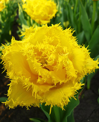 Тюльпан Mon Amour относится к бахромчатым сортам. Цветет в конце мая, образуя насыщенный яркий солнечно-желтый цветок, с аккуратной бахромой на кончиках лепестков. Высота бокала 6-7 см диаметр цветка - 8-12 см. Отличительная особенность этих тюльпанов - игольчатая бахрома окраса цветка по краям лепестков, напоминающая иней. Обладает тюльпан средней скоростью роста, подходит как для озеленения и украшения клумб, так и для букетов. Красивый насыщенно-желтый цветок возвышается на прочной ноге высотой 55-60 см. Сорт легко размножается, дает прекрасную срезку.
