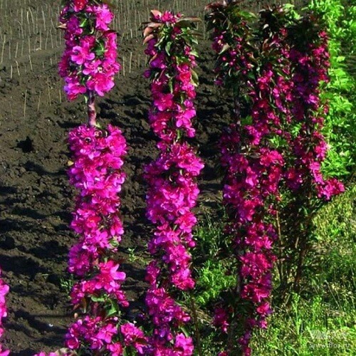 Яблоня Кармелита - колонна карликового типа роста декоративного назначения. В возрасте 5-ти лет высота дерева от 1 до 1.2 м. Цветы крупные, окраска цветка темно-фиолетовая, ближе к окраске цветов сорта Роялти. Наиболее раннецветущая форма. Сила прироста на 5-й год 10 см, ветвистости нет. Оголений ствола нет. Обильно плодоносит (5 баллов). Плоды тёмно- сиреневые, мелкие. Средняя масса плода 25-35 гр. Вкус кислый, вяжущий. Листовая пластина темно-зелёная с красновато бурым оттенком, красноватым черешком. Лист блестящий, средний.