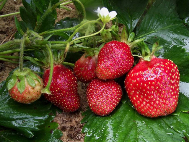 Саженцы земляники садовой Царица принадлежат к зимостойким сортам. Куст среднерослый, формирует густую крону. Соцветия компактные, располагаются ниже уровня листьев. Плод конической формы, темно-красного оттенка, глянцевый, ароматный. Мякоть плотная, сладкая на вкус, богата витаминами.Сорт земляники садовой Царица принадлежит к урожайным сортам, с одного гектара можно собрать до 130 ц ягод. Период созревания приходится на средний срок. Зимостойкость средняя, при температуре ниже -15 градусов могут повреждаться почки, устойчивость к вредителям и болезням высокая.