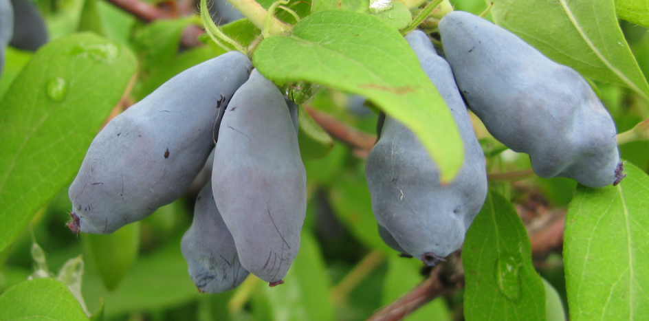 Саженцы жимолости Изюминка принадлежат к зимостойким сортам. Куст средний, со слабо раскидистой кроной, побеги изогнутые, матовые, имеют фиолетовый окрас. Листья светло-зеленые, среднего размера, опушение слабое, основание листовой пластинки выпуклое. Плод крупный, синий с небольшим налетом, сладкий без горького привкуса. Крупномер жимолости Изюминка принадлежит к среднему периоду созревания, урожайность средняя, 1,4 кг с одного кустарника, ягоды используются для переработки. Преимуществами являются: зимостойкость, высокое содержание витаминов в плодах.