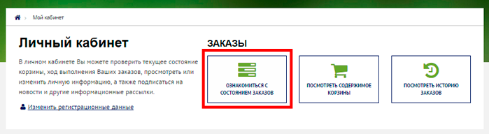 • Через личный кабинет в разделе «Ознакомиться с состоянием заказов».